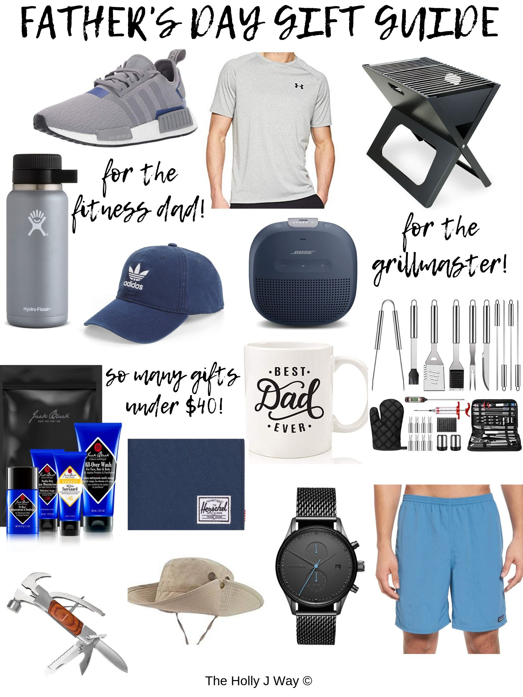 ADIDAS NMD RUNNING SHOES | UNDER ARMOUR TEE | PORTABLE GRILL | BBQ GRILL TOOL KIT | HYDROFLASK | ADIDAS BASEBALL HAT | BOSE BLUETOOTH SPEAKER | JACK BLACK GIFT SET | BEST DAD EVER MUG | HERSCHEL WALLET | 8-IN-1 MULTI-TOOL | PATAGONIA SWIM TRUNKS | OUTDOOR SUN HAT | MVMT WATCH